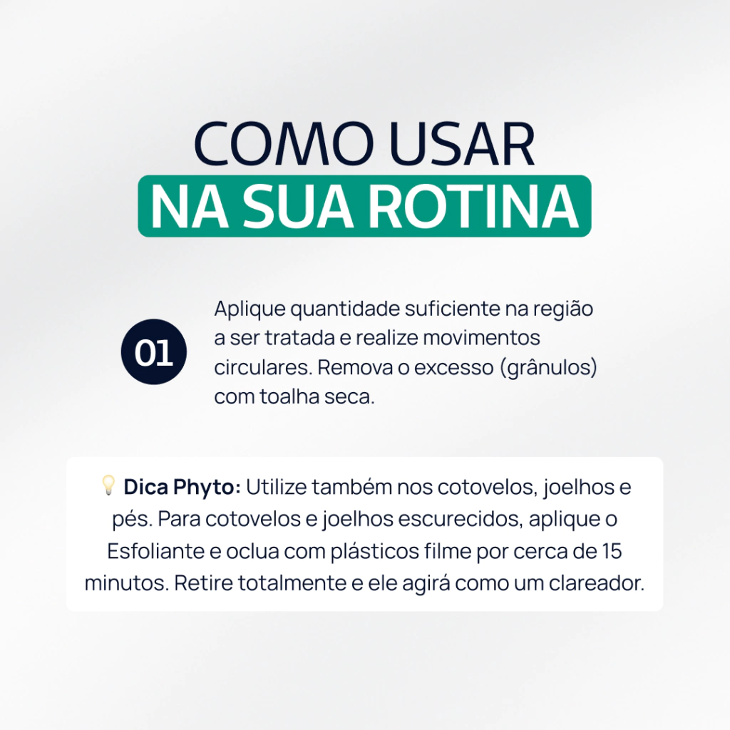 Dica Phyto: Utilize também nos cotovelos, joelhos e pés.