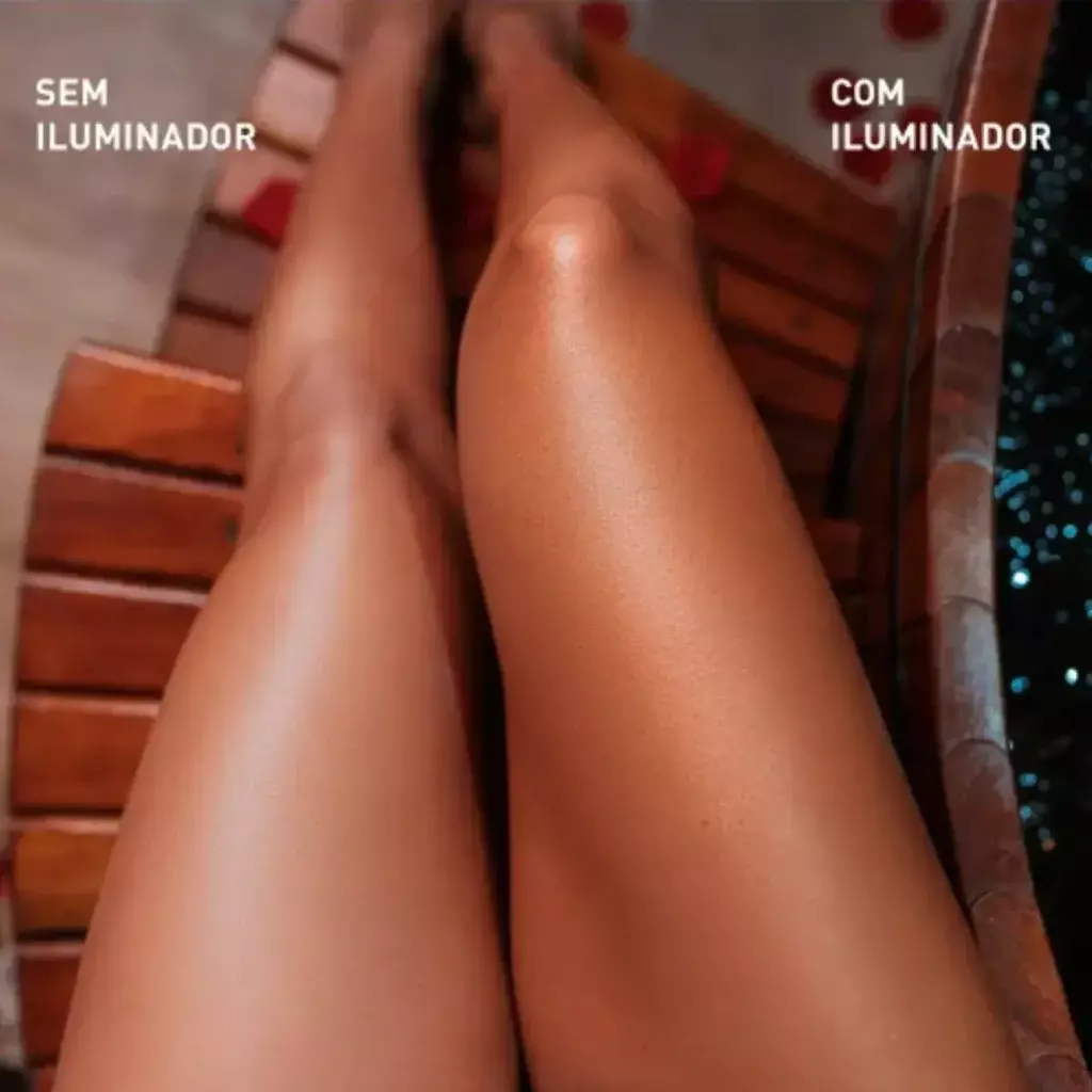 Corpo: Aplique o produto nas áreas que deseja realçar, como os ombros, colo e pernas. Espalhe suavemente com as mãos com movimentos circulares para obter um brilho uniforme e natural.