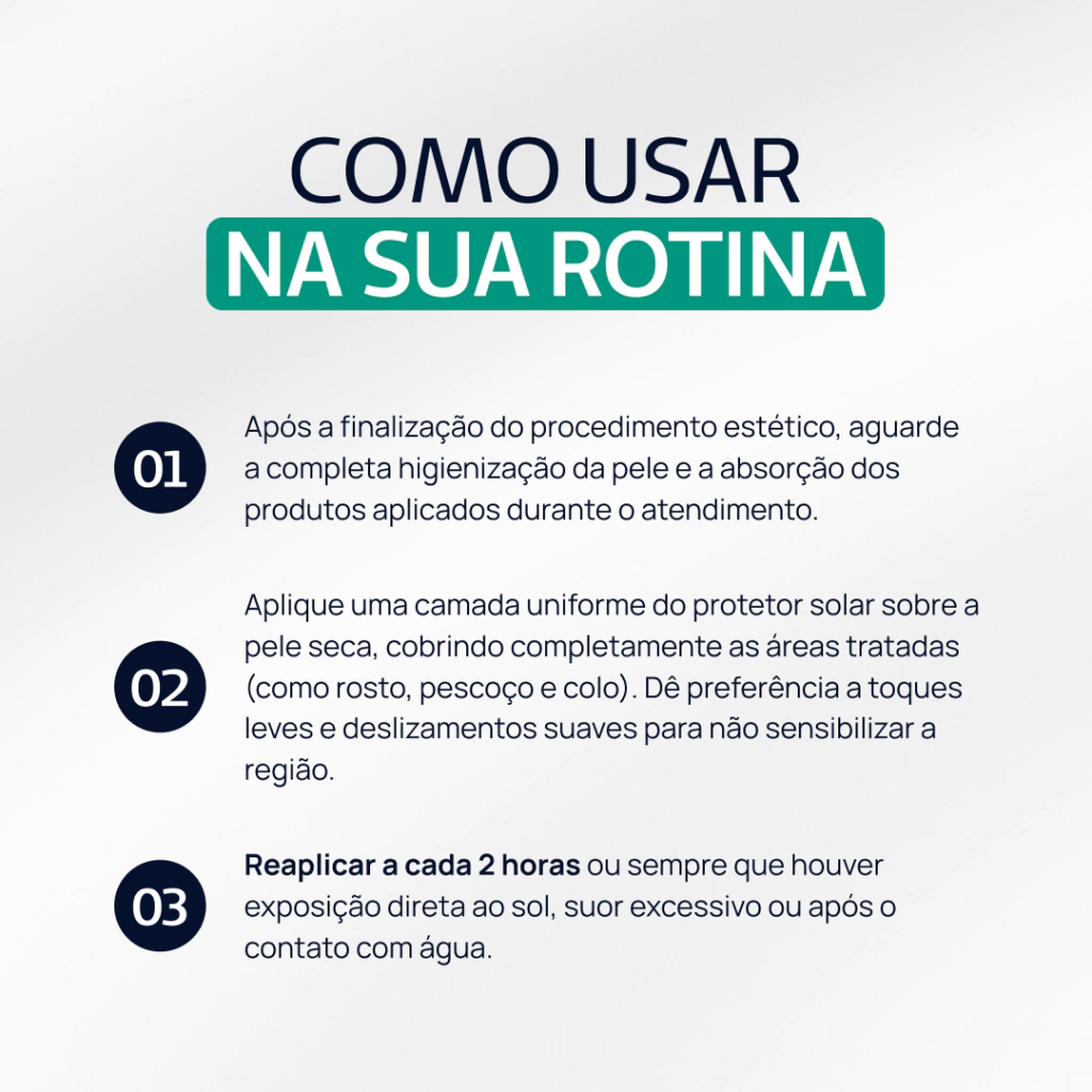 Aplique sobre a pele limpa e seca, duas vezes ao dia e espalhe uniformemente pelo rosto até completa absorção.